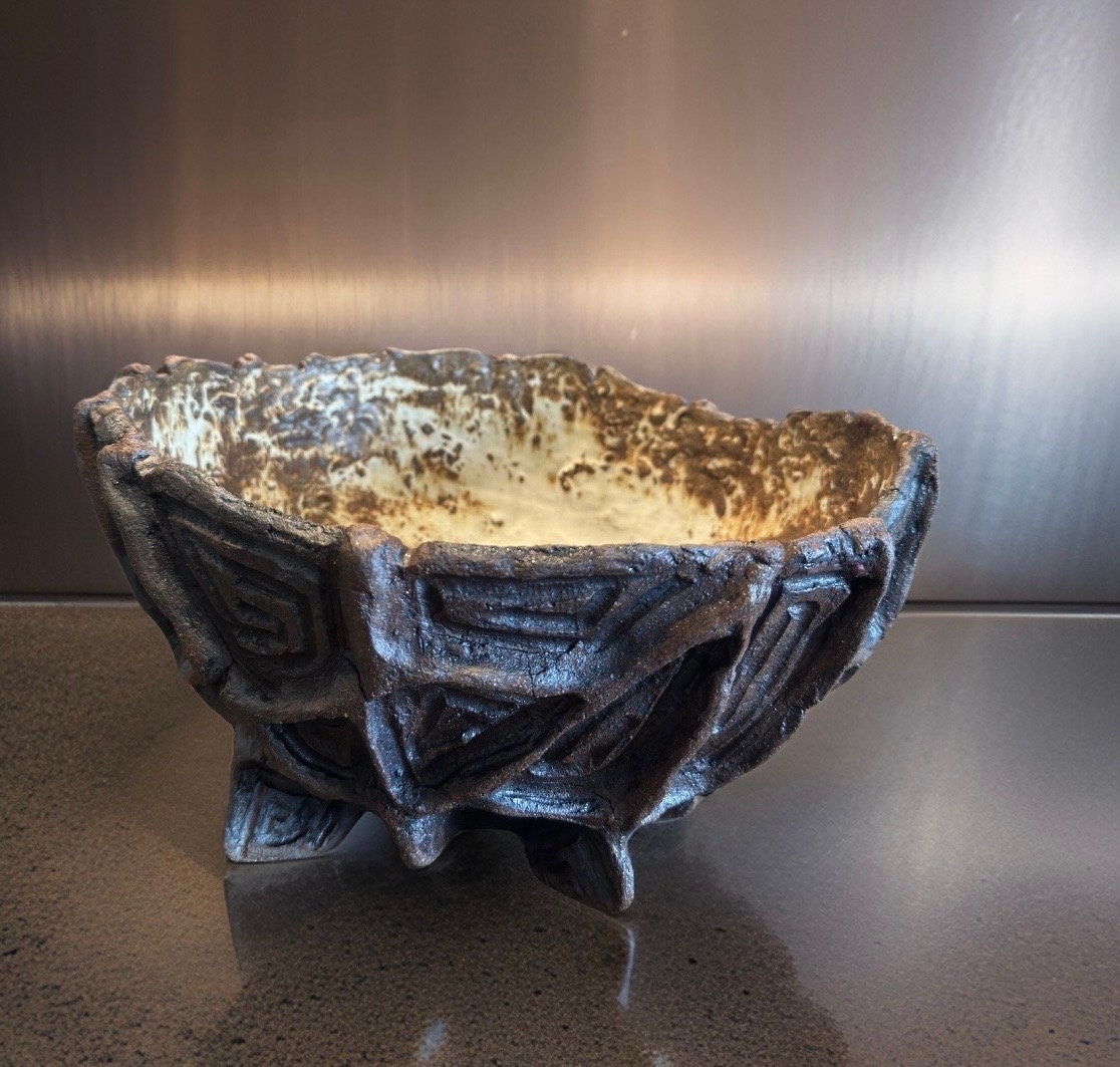 This one-of-a-kind handmade ceramic vase features a unique textured surface and organic form, inspired by the Japanese art of Ikebana. Its sculptural design makes it equally beautiful as a display piece or as a vessel for floral arrangements.